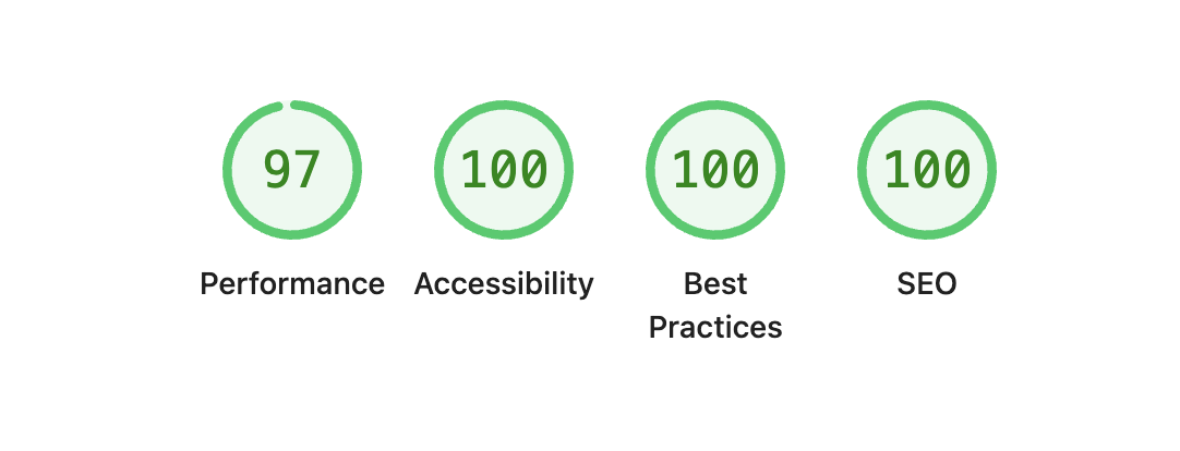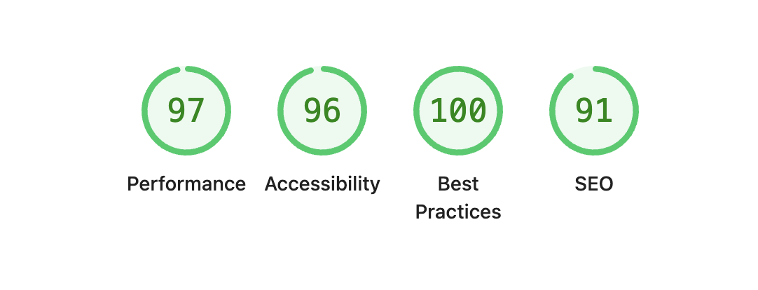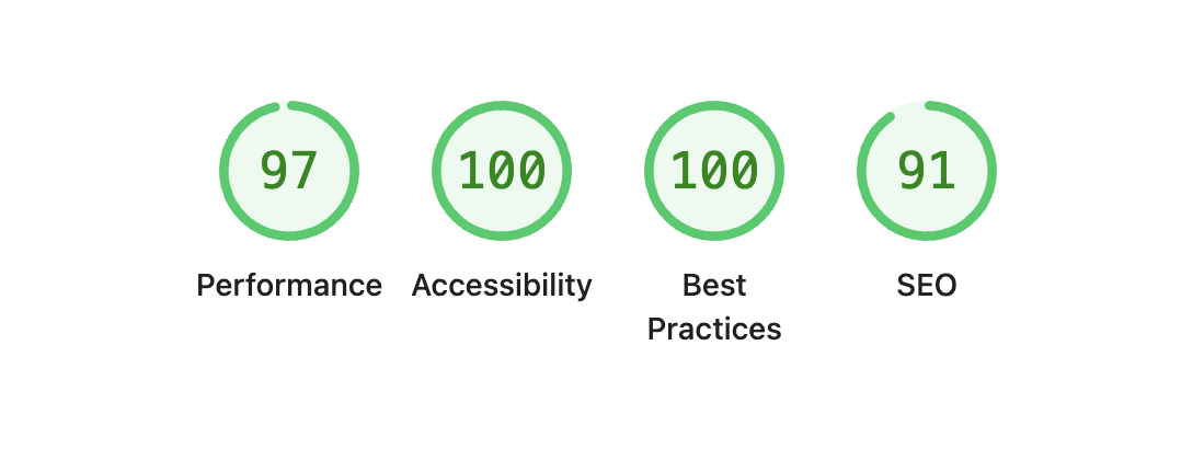 Semantic HTML and SSR got me the scores below. My website is mostly static, yet I wanted to improve it a little bit more.