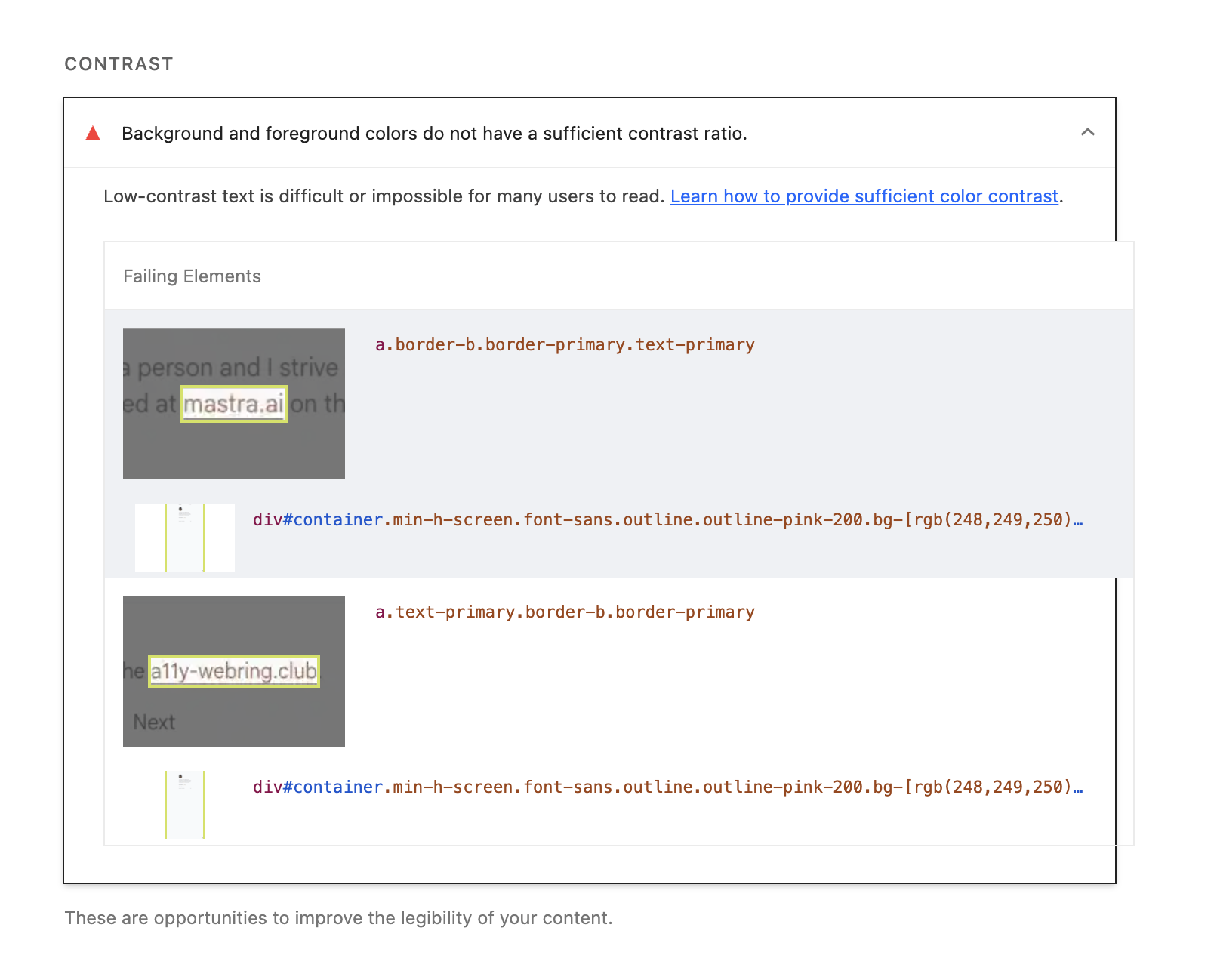 Lighthouse complained that some of my links did not have enough contrast.